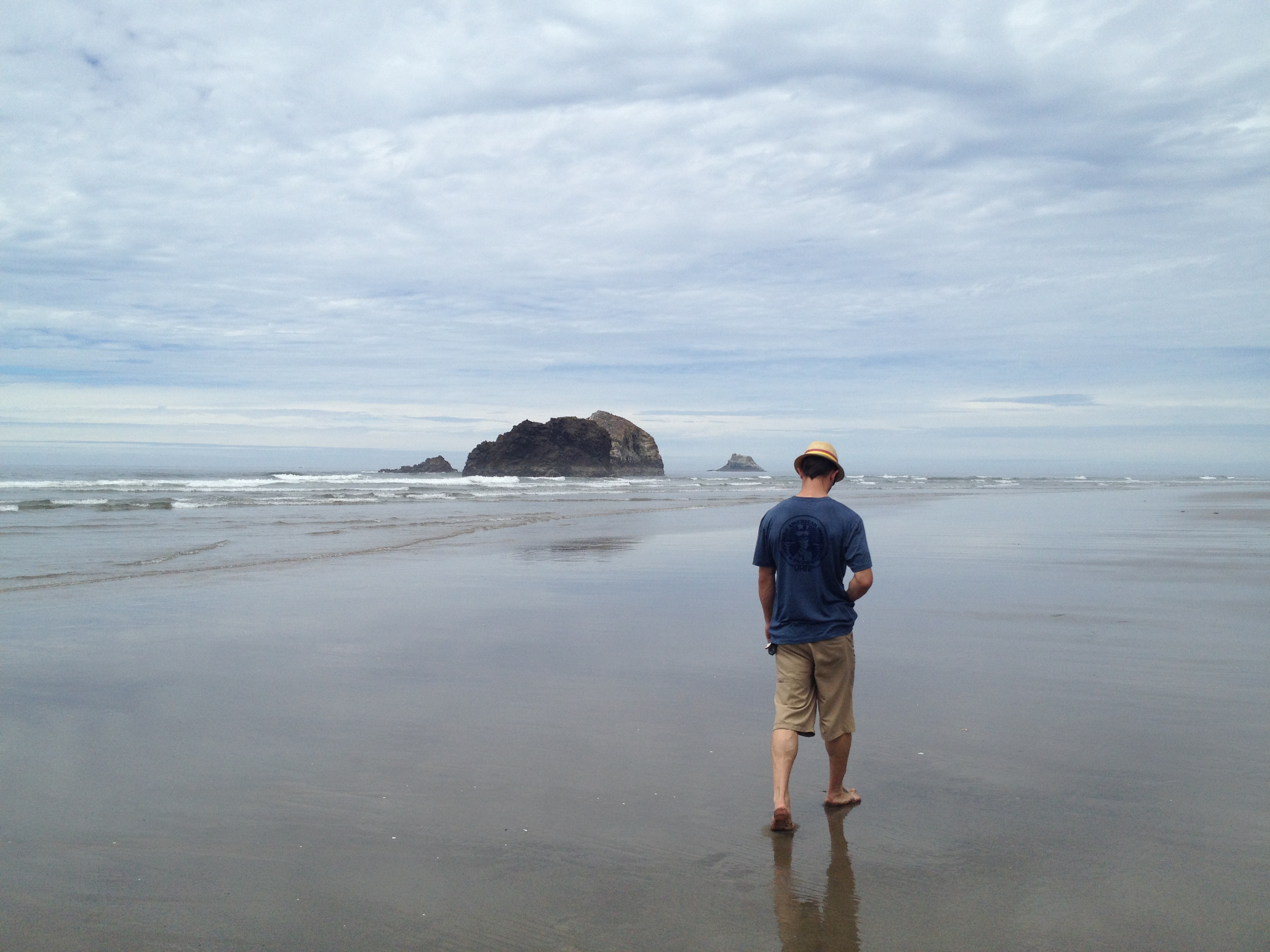 A friend going through a divorce,  lost in thought, while strolling along a West coast beach after two week of driving from East coast Vermont.