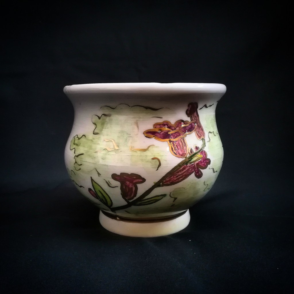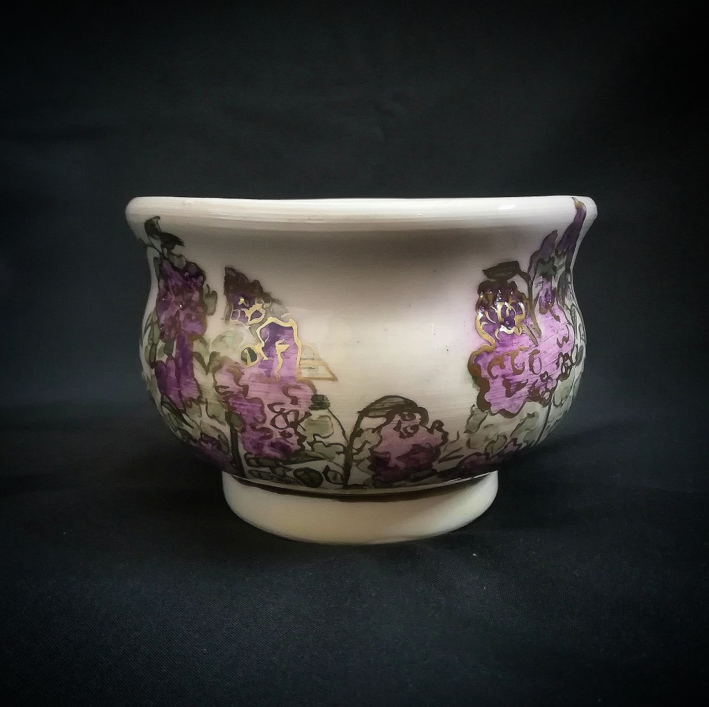 2021 wheel-thrown ceramic, hand-painted oxides with transparent glaze, gilded with gold enamel