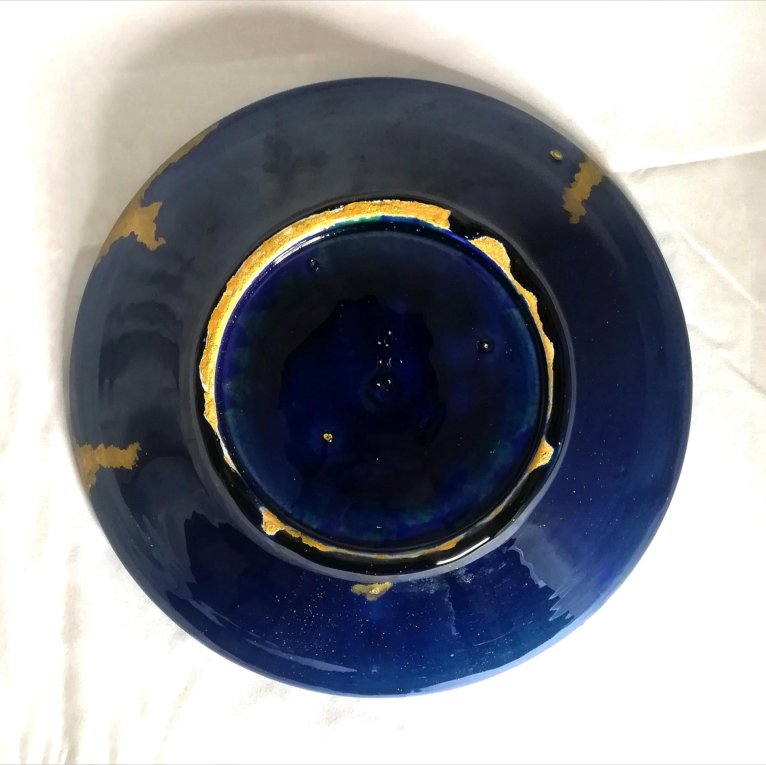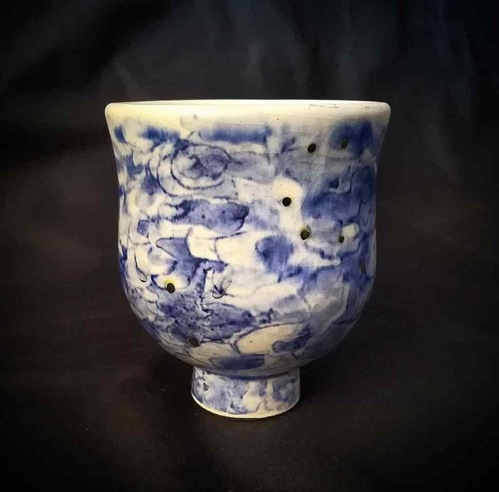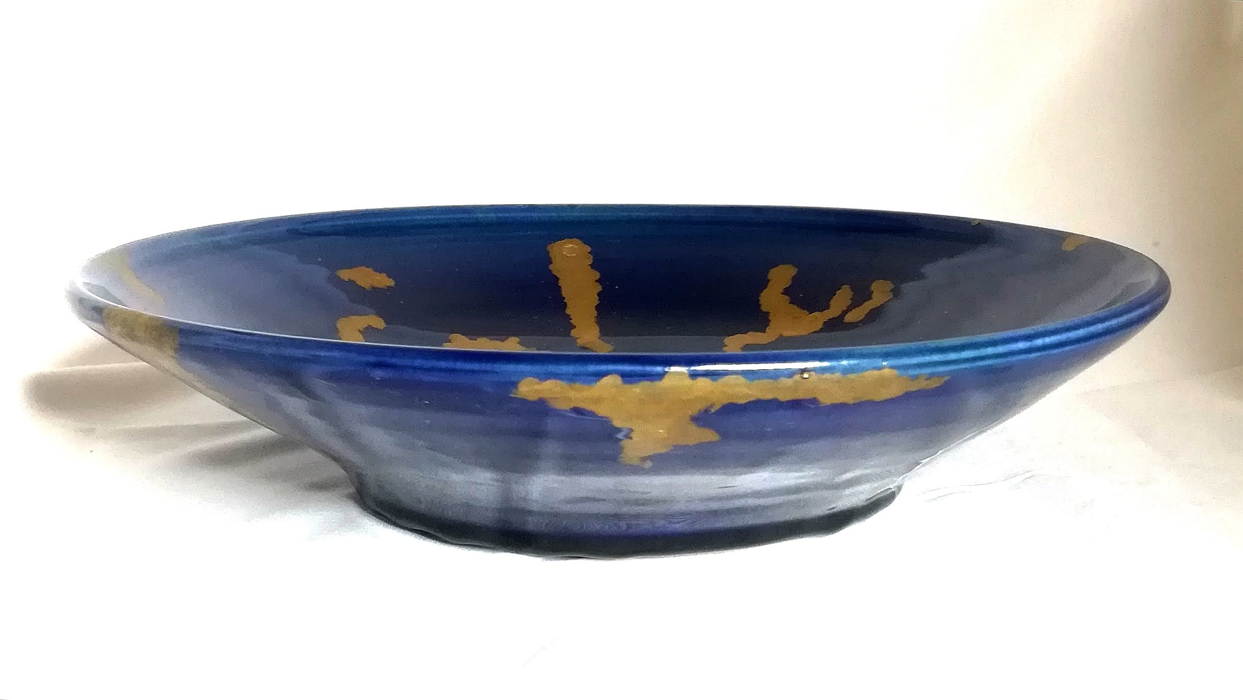 2021 wheel-thrown ceramic, hand-painted oxides with matte glaze, crackled and gilded