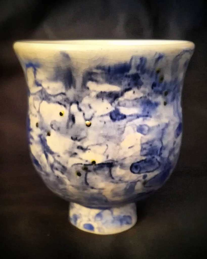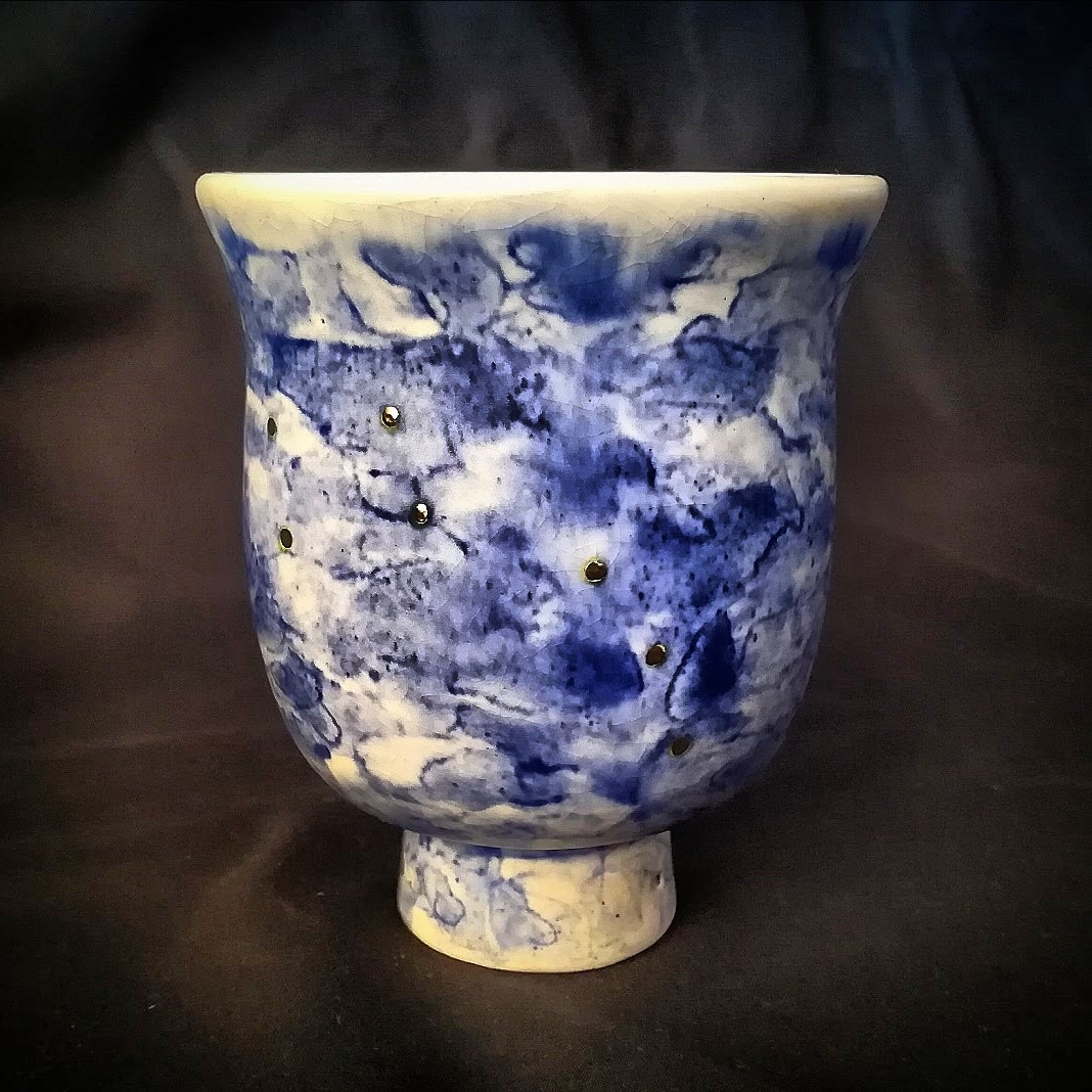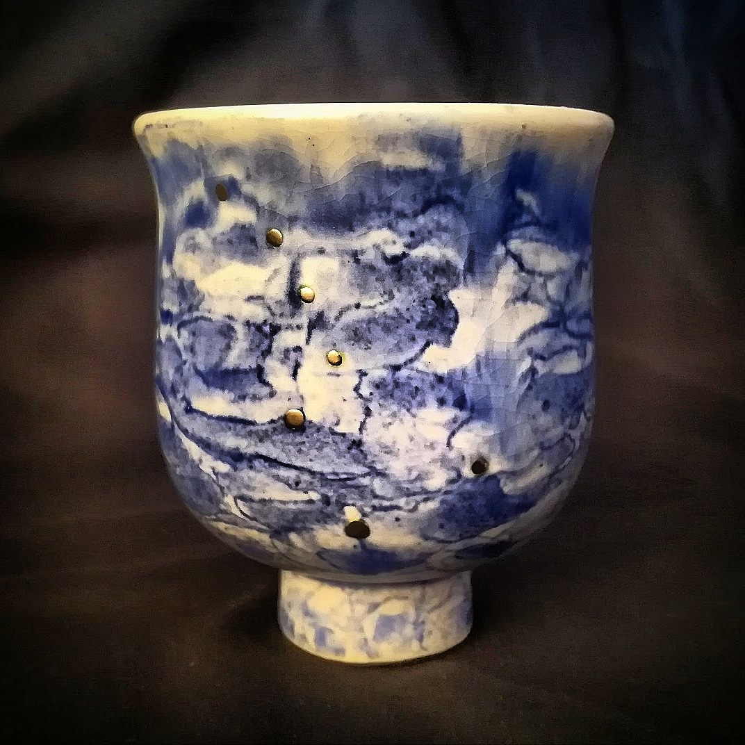 Let’s take a closer look at the water cup True North and some of its details. I love the play of light across the gold stars. And I must admit I’ve been a bit obsessed with blue white gold on my pieces for the past five years. I have an entire series of yet-to-be-shown sculpture that is based on that color scheme.