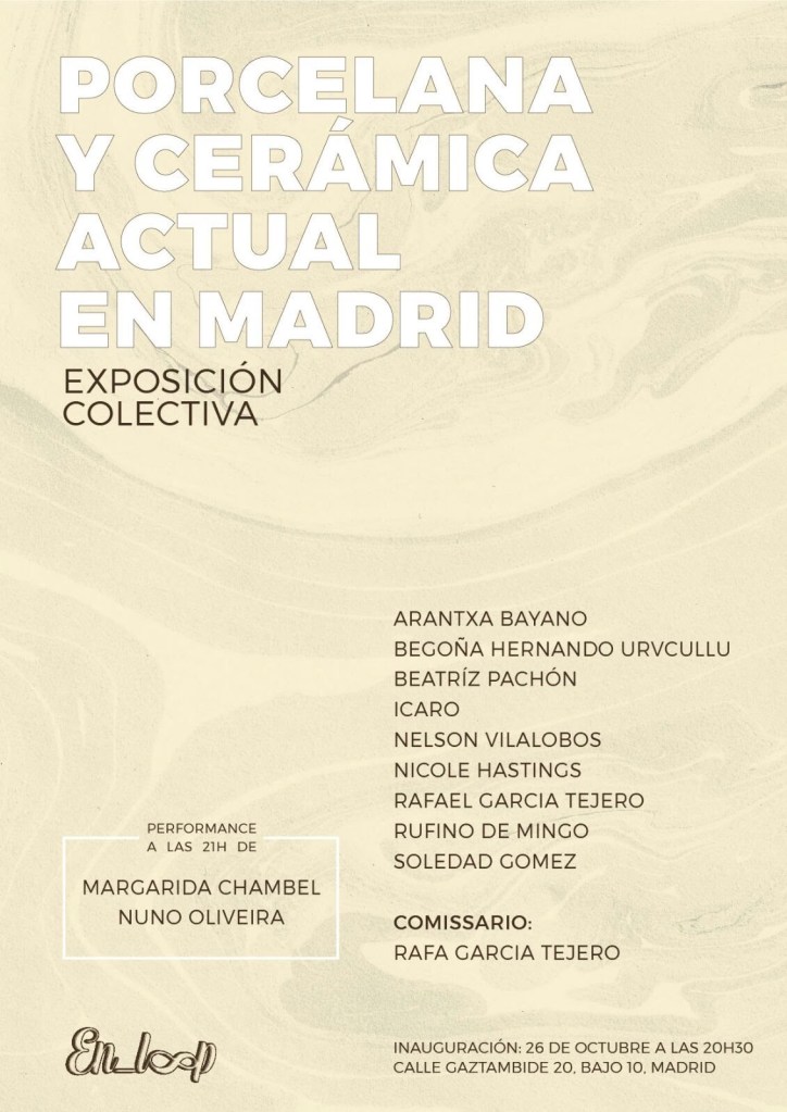 Porcelana y Ceramica Actual en Madrid Contemporary ceramics exhibition in En Loop Gallery 26 / 10 / 2017 Return to Exhibitions Share this: Click to share on Facebook (Opens in new window) Facebook Click to share on Pinterest (Opens in new window) Pinterest Click to share on X (Opens in new window) X Click to share on LinkedIn (Opens in new window) LinkedIn Click to share on Reddit (Opens in new window) Reddit Click to share on Tumblr (Opens in new window) Tumblr Click to share on Pocket (Opens in new window) Pocket Click to email a link to a friend (Opens in new window) Email Click to print (Opens in new window) Print Like Loading...