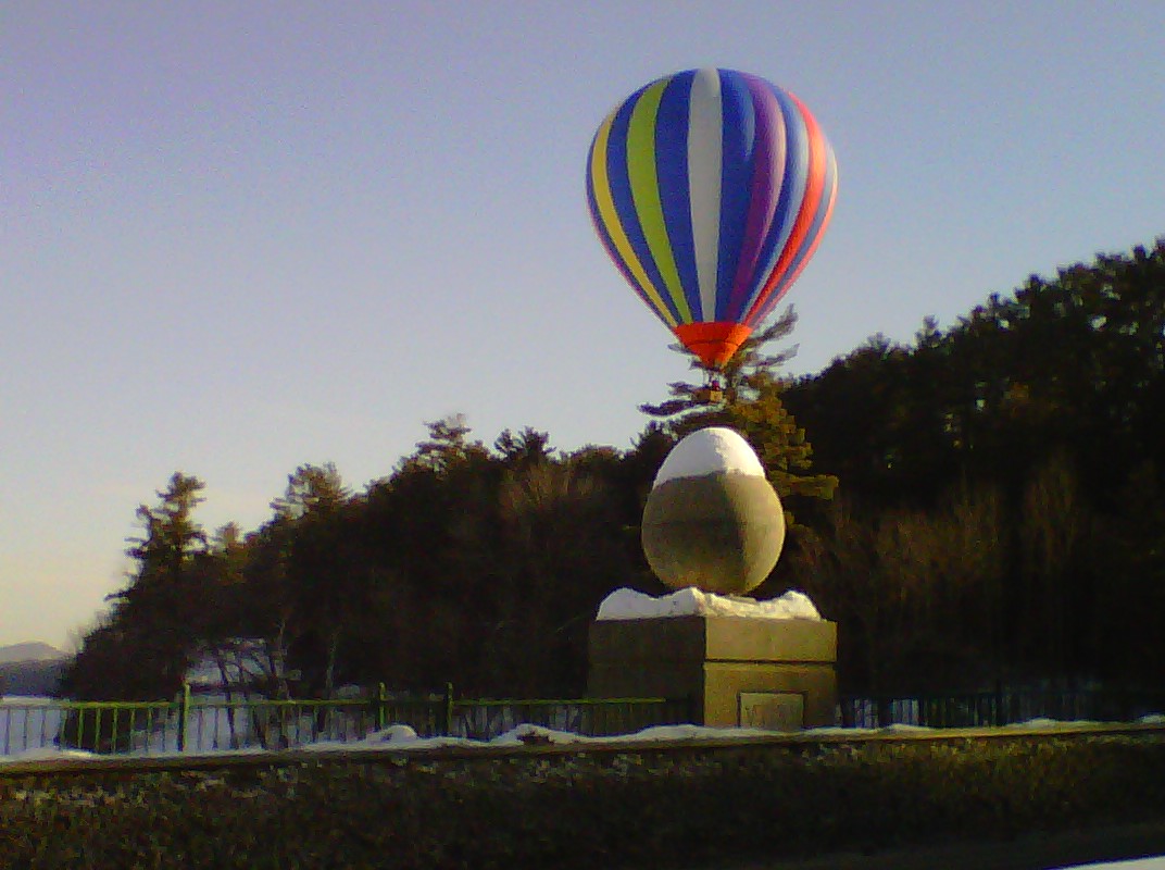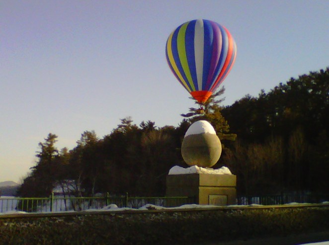 “It was February 11, 2011.  I was crossing the Ledyard Bridge towards Hanover and there to my left was a treat.  An unexpected image of morning symmetry.  At first I fumbled with my phone after taking the first picture and trying for a second one.  A window of time was closing.  And I thought the first picture had hidden the basket behind the bridge.  I couldn’t get the camera readied quickly enough.  The window closed.  Upon closer inspection later that evening I came to the conclusion that I was satisfied with my one and only shot.”