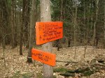 As a volunteer Appalachian Trail corridor monitor , Hastings was alerted to the sight of a mountain bike’s tire treads on the AT in Norwich, off of Cossingham Road. As a designated National Scenic Trail, the AT is meant for foot travel only and is subject to National Park Service regulations prohibiting bicycle and motorized travel of any kind, as well any use by riders of “pack animals,” i.e. horses, mules, goats and llamas.